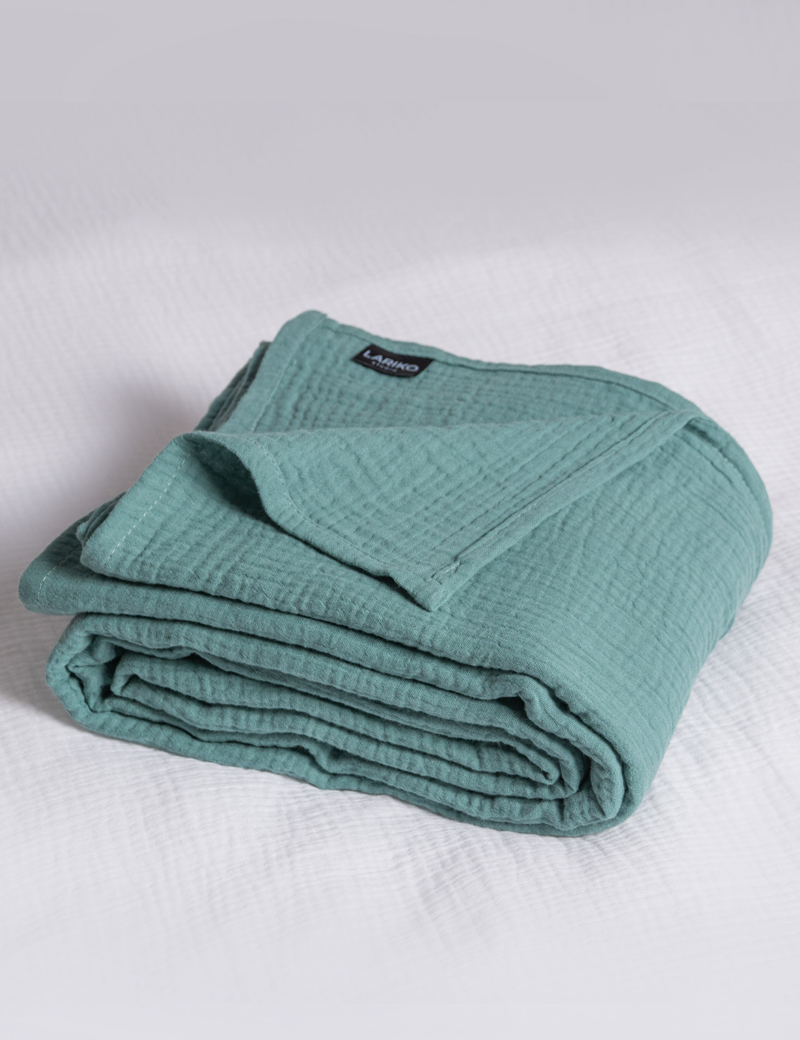 Soft natural blanket made of 1 layer of fabric (1 layer of fabric consists of 2 layers of gauze). This blanket is perfect for summer evenings. You can use our cotton blanket as a bedspread or as a cover for your sofa or bed. The edge is folded over and finished with a seam. You can choose any of the available colors. If a color is temporarily out of stock, please contact technical support. Our bedspread is easy to wash and iron. The bedspread is a perfect and versatile gift for anyone.