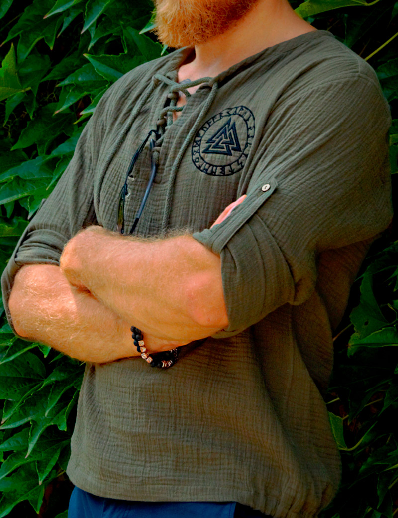Die Kleidung der Wikinger war ein wichtiger Teil ihrer Kultur und spiegelte ihren Lebensstil, die klimatischen Bedingungen und die sozialen Normen wider. Die Untersuchung dieser Aspekte ermöglicht ein tieferes Verständnis der Lebensweise dieser Menschen. Wenn Sie sich für den skandinavischen und mittelalterlichen Stil interessieren, laden wir Sie ein, unser Sortiment an Kleidung zu durchstöbern. Wir kreieren natürliche Produkte, die modernen und mittelalterlichen Stil miteinander verbinden. Bequeme Musselin-Kleidung, wie z. B. ein Musselin-Hemd für Männer, wird Ihnen helfen, sich wie in Fernsehserien und Filmen wie Der Herr der Ringe und The Witcher zu fühlen. Viele unserer Kunden kaufen Wikingerhemden für Festivals, Cosplay und einfach für den Alltag. Unser Herren-Musselinhemd aus Naturmaterial ist die perfekte Wahl für alle, die Komfort und einen von den Wikingern inspirierten Stil schätzen.