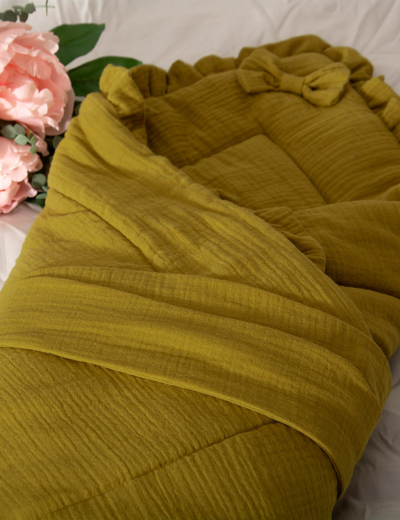 Made of soft muslin, the blanket has a thin filling, which makes it ideal for warm days. It provides a pleasant wrap-around feeling while not overheating the baby thanks to its breathability.
