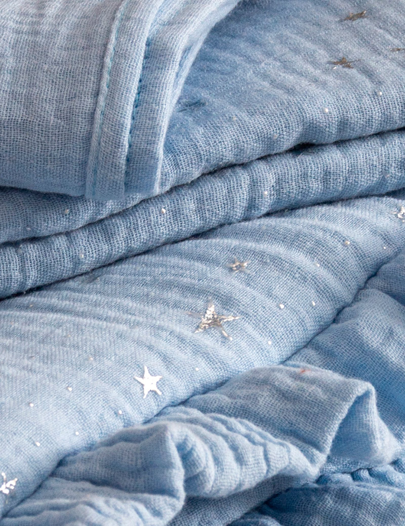 Made of soft muslin, the blanket has a thin filling, which makes it ideal for warm days. It provides a pleasant wrap-around feeling while not overheating the baby thanks to its breathability.