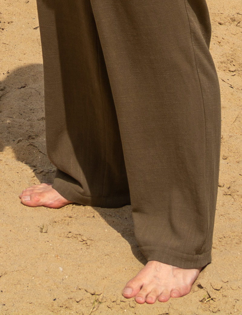 The pants are made of high quality fabric in green fashionable color Winter moss. Classic color scheme makes this model one of the most popular. Several colors are available. The long pants are ideal for everyday life and outings in the city or by the sea. These pants were made in Poland. The pants have two practical pockets and an elastic waistband with a drawstring for size adjustment. Thanks to the high-quality material, the pants are comfortable to wear.