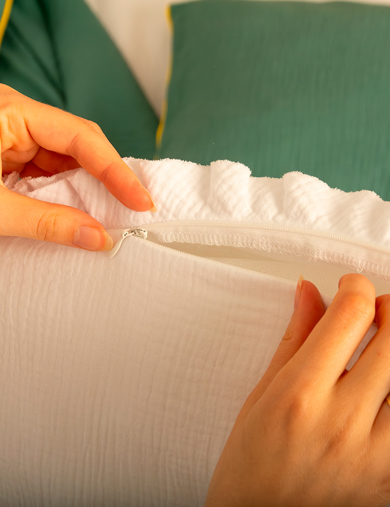 The convenient snake allows you to quickly and easily put on and take off the pillowcase on the pillow. Different colors and sizes of muslin pillowcases are available.