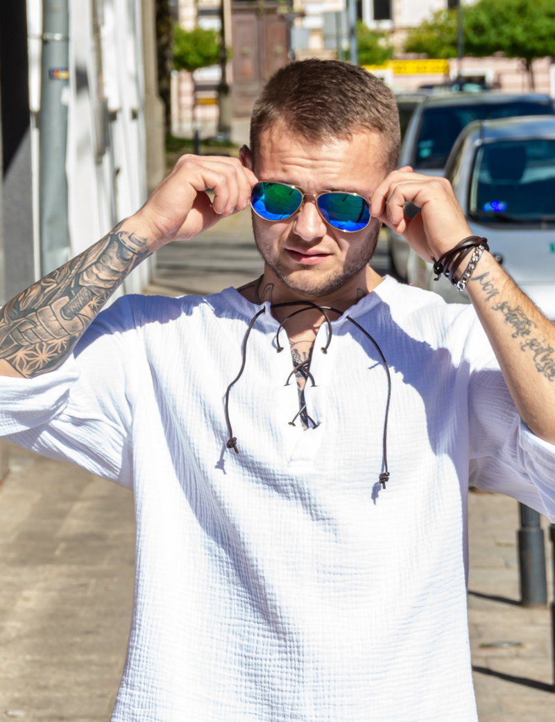 Inspired by boho, ethnic, and fantasy styles. For men who value freedom, comfort, and quality. A solid alternative to linen — softer, less wrinkly.