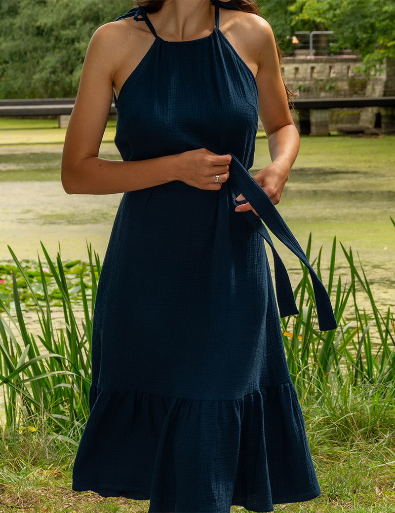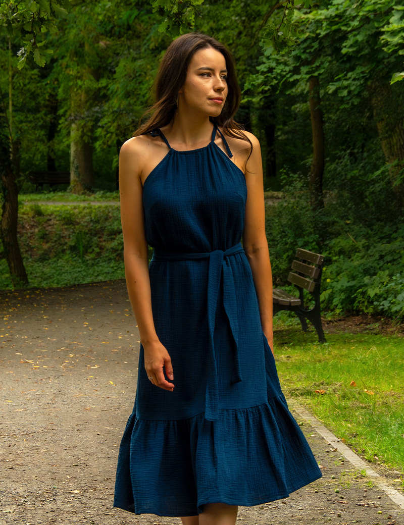 Each dress is meticulously handcrafted, reflecting a commitment to high quality and attention to detail—true slow fashion at its best. Whether you're walking through a park, relaxing at the beach, or enjoying a laid-back summer afternoon, this dress offers effortless style and breathability. It’s perfect for those carefree summer days when you want to look and feel your best.
