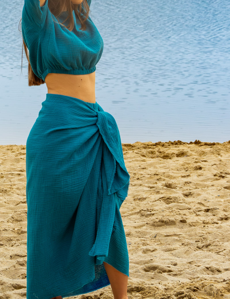 The Sylwia pareo is a natural and pleasant to the body beach cover for women. The pareo can be worn with a swimsuit or combined with other beachwear. Beach pareo with can be used as a skirt to cover your legs while walking along the beach.