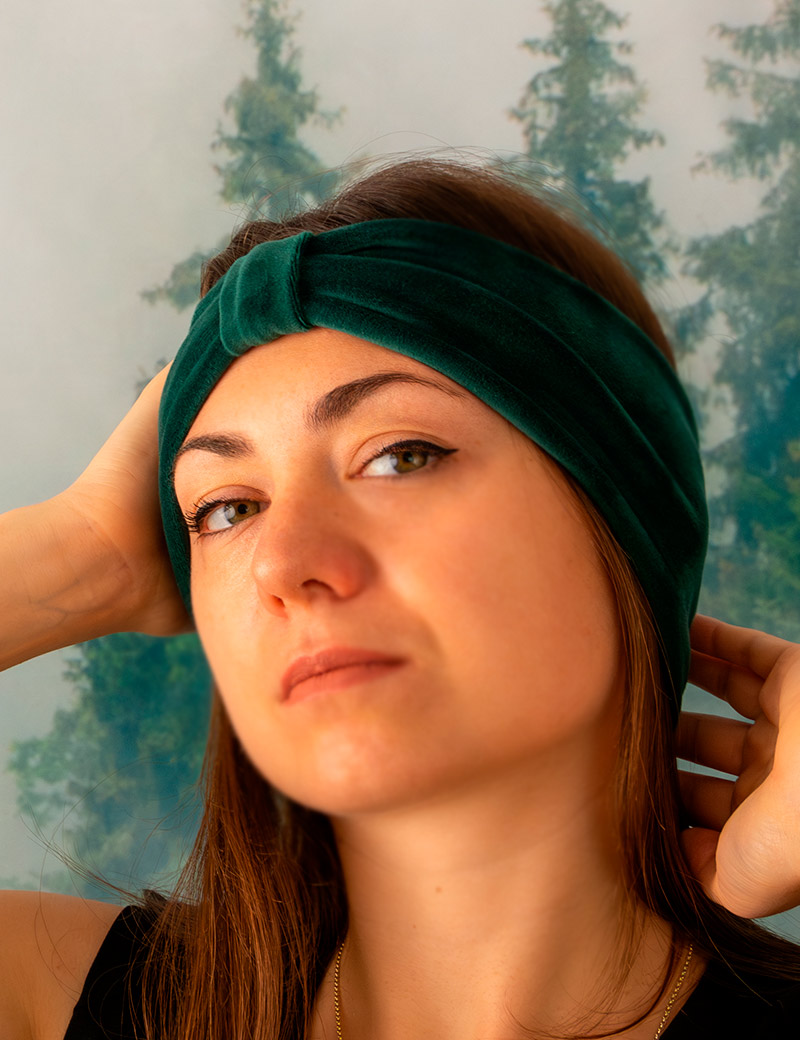 This comfortable velour headband is the perfect addition to your everyday look. The headband can be worn at home or outdoors. Green headband is suitable for dark-haired girls. The headband is made of soft and stretchy fabric, which makes the headband fit perfectly on your head.