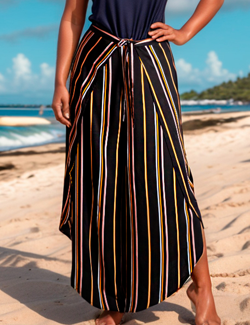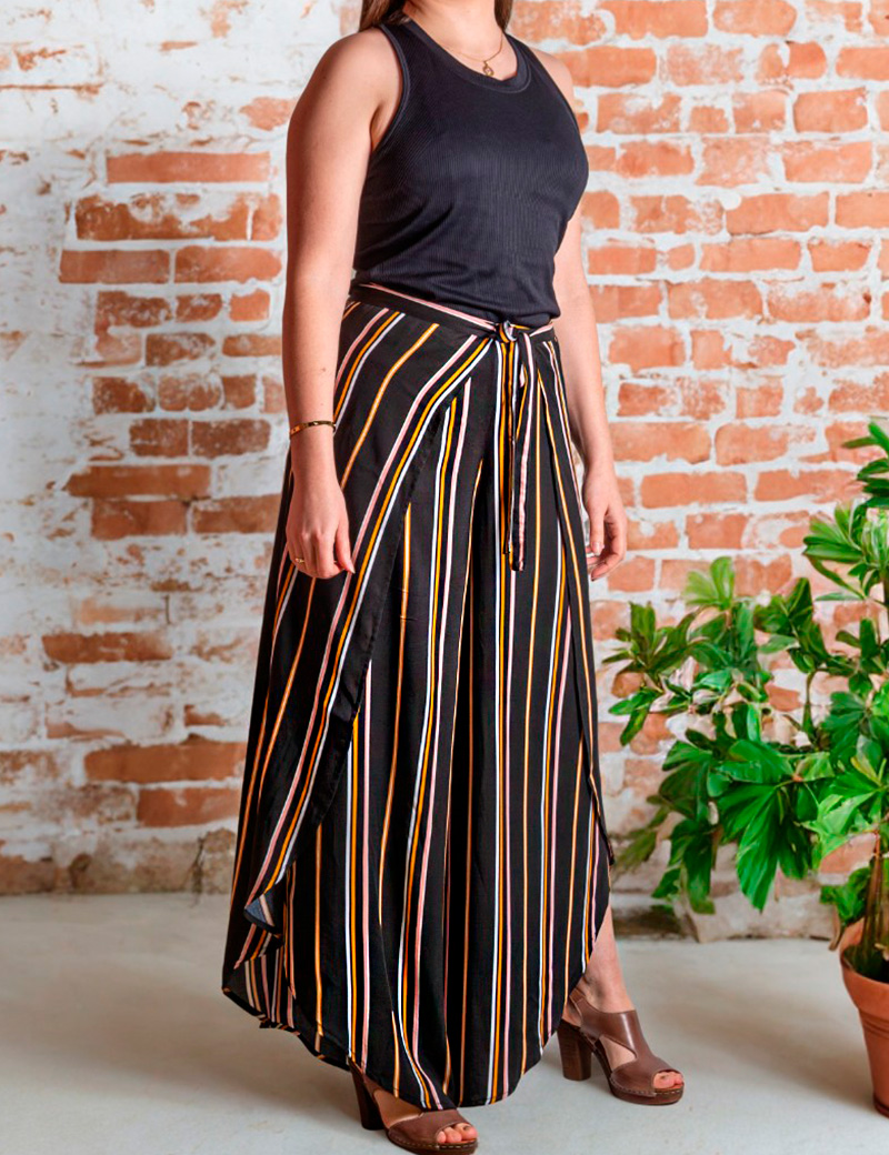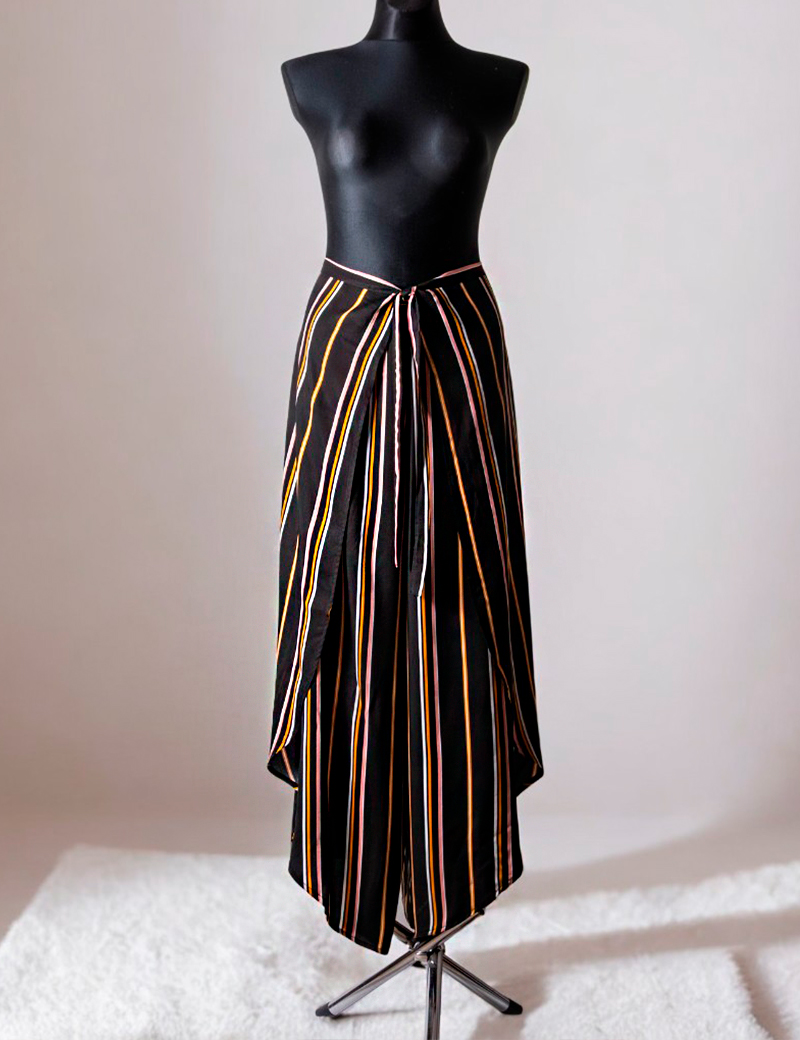 Black lightweight pants with waistband. The summer pants come in size S-L and are made from 100% lightweight viscose for breathability and softness, perfect for hot weather. The design is inspired by traditional Thai pants. These boho style pants have a loose fit, making them perfect for beach vacations at sea. The palazzo pants are suitable for boho and Arabian style looks.
